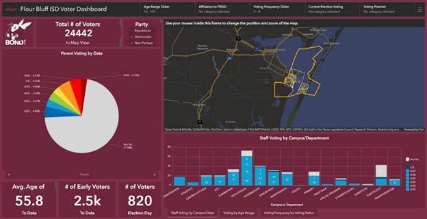 Pfluger Architects, a leader in comprehensive bond planning and communication strategies for educational institutions, faced the challenge of developing a tool that could clearly express complex voter and GIS datasets while preserving powerful GIS functionality. “I was tasked with figuring out a way to use registered voter data in a way that was more powerful than just Excel sheets, which was the typical way of using it,” said Casey Wilkinson, Marketing Specialist at Pfluger.